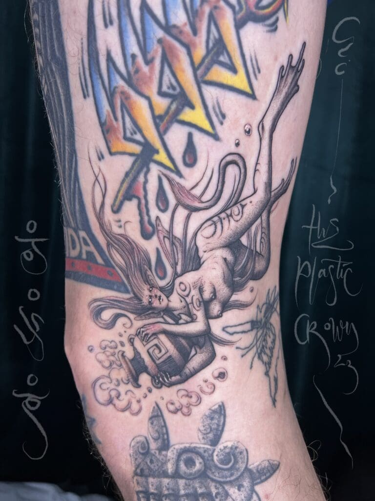 Hi there, thanks for your interest in my craft: An Aquarian Realm. My name is Daniel, and I usually go by Dani (formerly The Plastic Crown). I was born in the city of Chicago back in 1993 but grew up in Burgos, Northern Spain, where I started tattooing in 2009. I’ve been making art for as long as I can remember. I consider myself a multifaceted artist: I draw, paint, sculpt ceramics, do jewelry, carve stones, make merchandise, and create music. I’ve been based in Chicago since 2016 and have been traveling the world since then, tattooing all over and seeking inspiration among all the ancient cultures and wonders of the world.