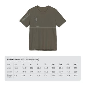 This classic unisex jersey short sleeve tee fits like a well-loved favorite. Soft cotton and quality print make users fall in love with it over and over again. These t-shirts have-ribbed knit collars to bolster shaping. The shoulders have taping for better fit over time. Dual side seams hold the garment’s shape for longer. .: 100% Airlume combed and ringspun cotton (fiber content may vary for different colors) .: Light fabric (4.2 oz/yd² (142 g/m²)) .: Retail fit .: Tear away label .: Runs true to size